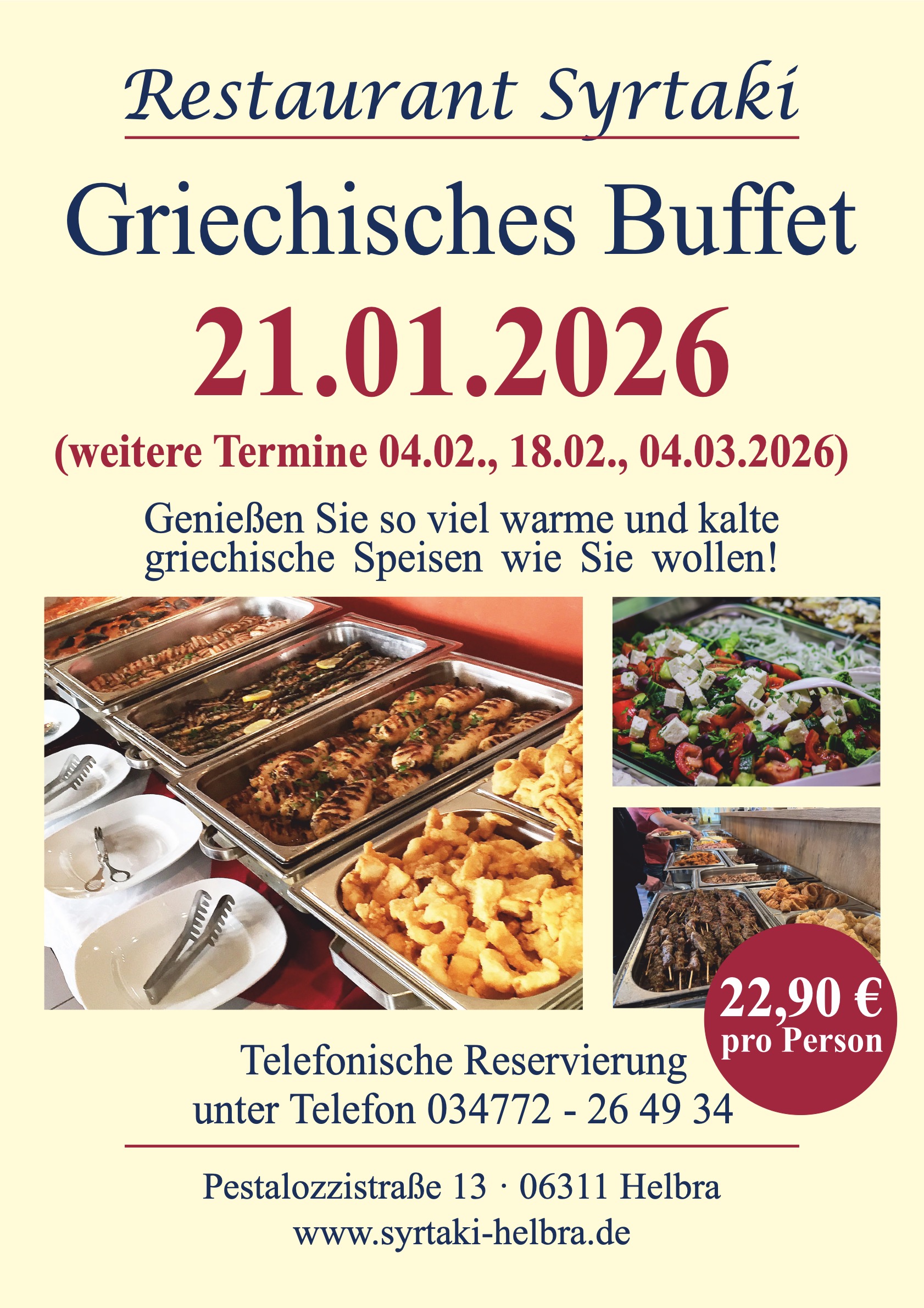 Wir würden uns freuen Sie recht bald in unserem Restaurant Syrtaki in Helbra begrüßen zu dürfen.